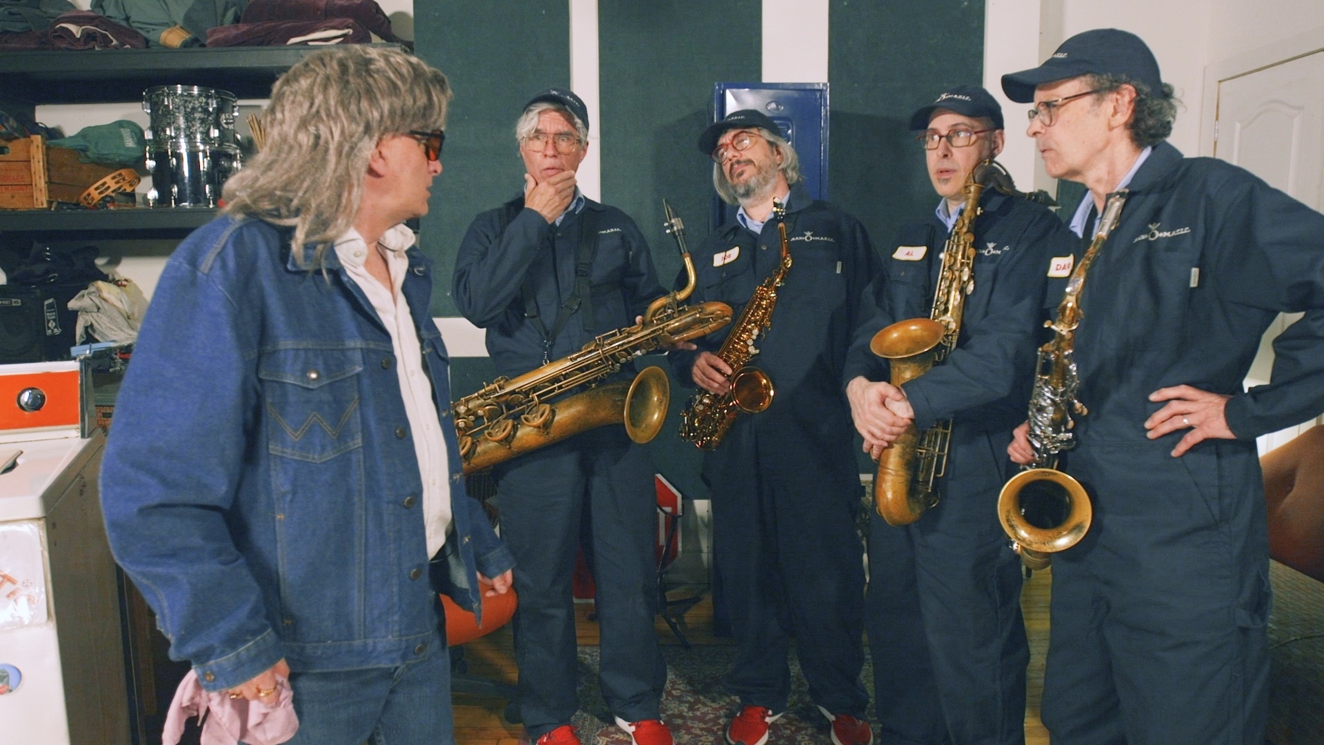 A quartet of saxophone playing repairmen attempt to find solutions to a multitude of problems that enter their repair shop.